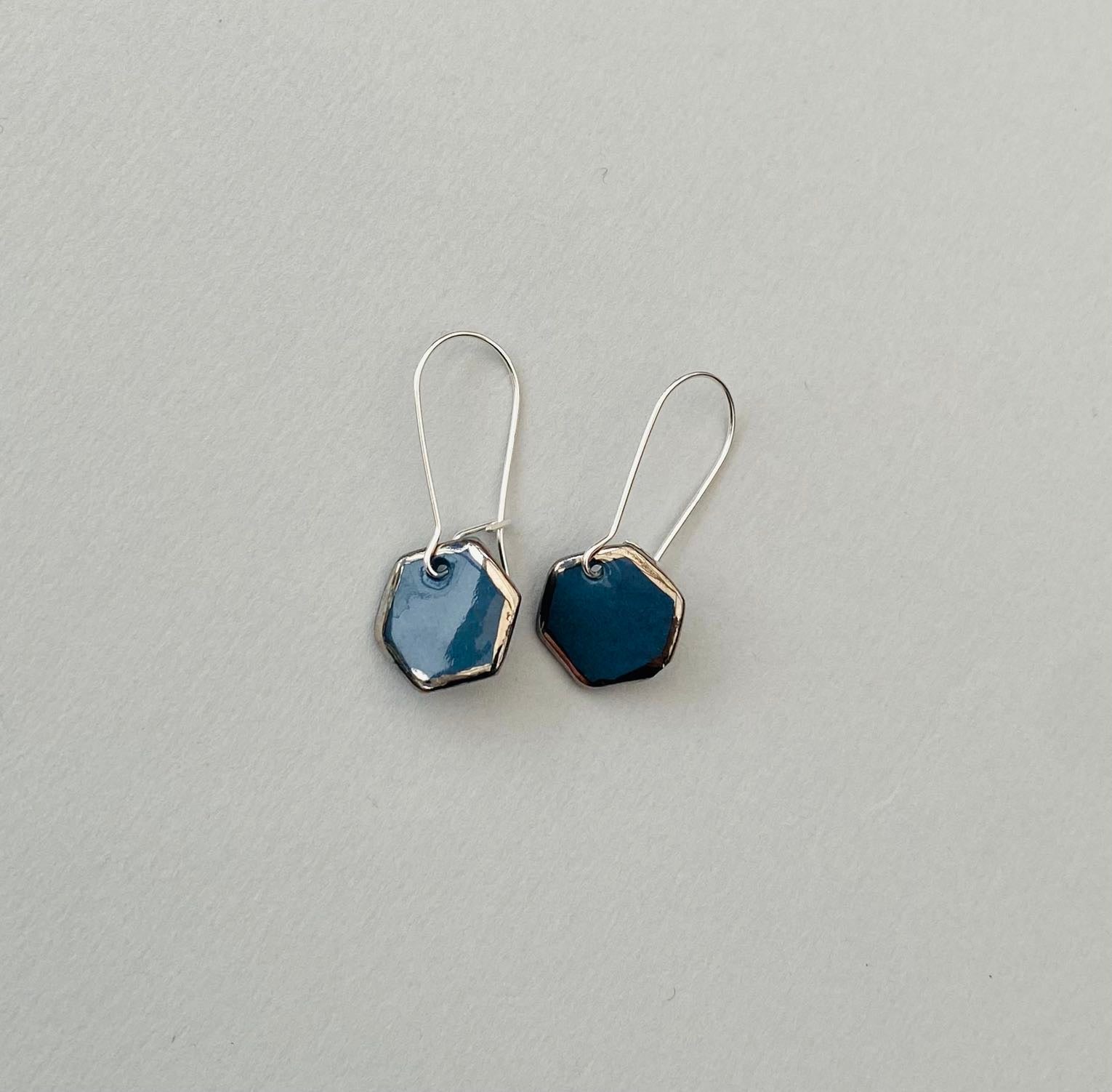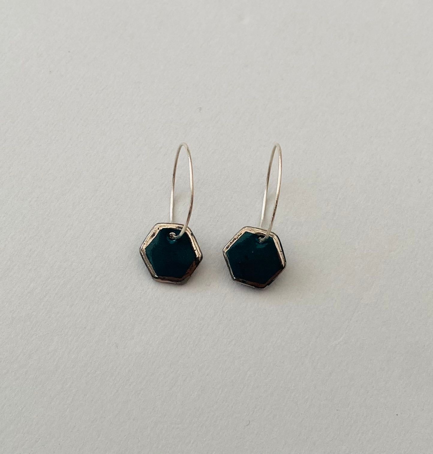 Handcrafted hexagon pendant earrings available in a variety of different colours.